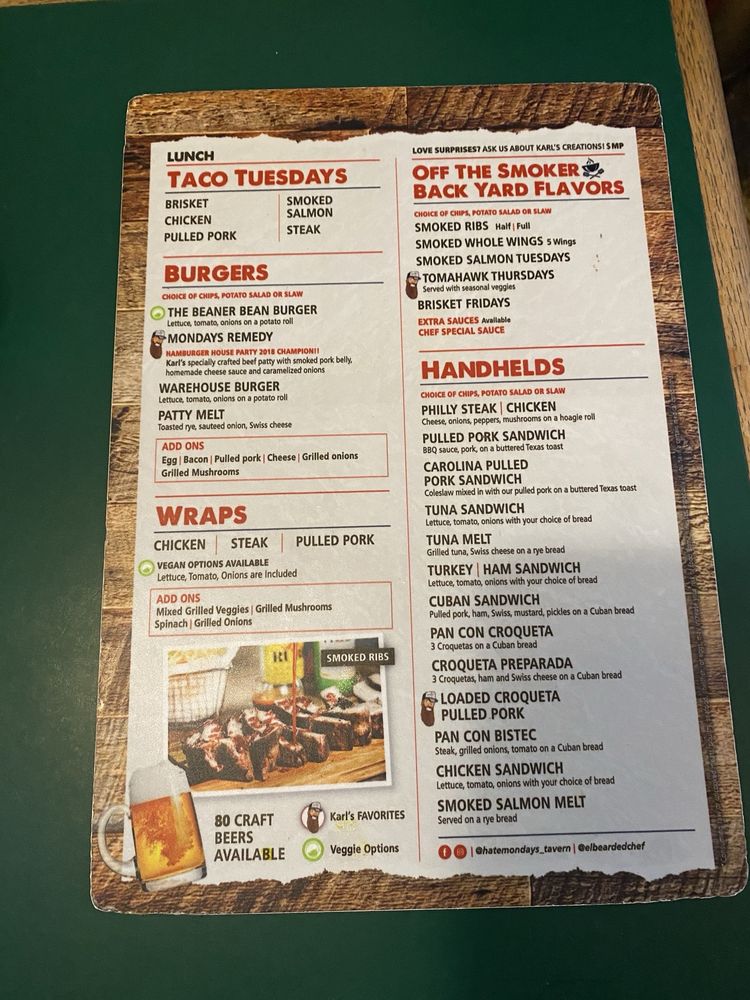 Each dish reflects the tavern's spirit of turning frowns into smiles—making every Tuesday feel like a Friday. With a friendly atmosphere and dedicated service, Hate Mondays Tavern is the perfect antidote to the weekly grind.